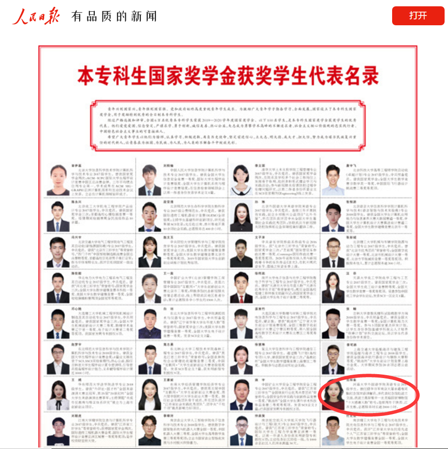 近日,《人民日报》刊登了全国百名本专科生国家奖学金获奖学生优秀代表名录。曾在我馆做过紫金草志愿者的姑娘范梓欣,从2019-2020学年全国6万名国家奖学金本专科生获得者中脱颖而出!