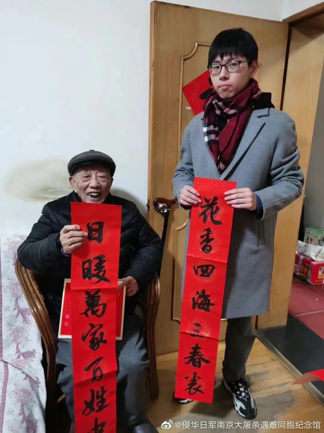 其实早在2020年,当时读高一的他就参加了“新春慰问南京大屠杀幸存者”活动。“我来到张仕翔老人家中。老人已年过九旬,他依然愿意克服伤痛,为捍卫历史真相义无反顾。历史证人终将老去,年轻人应当肩负起讲述历史、传承历史的责任。”这次慰问幸存者的经历在他的心中埋下了一颗种子,从那时起,他每年都会上门慰问幸存者。
