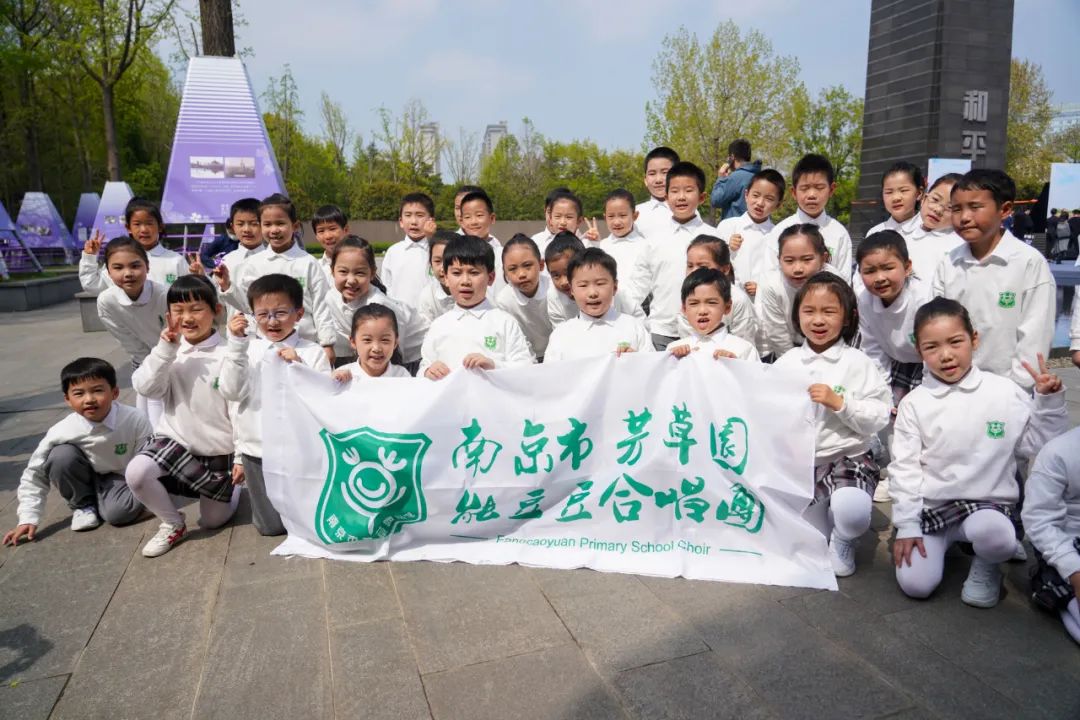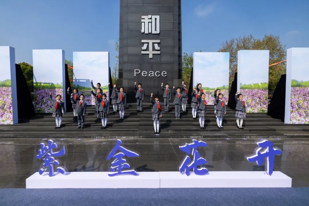 “古城墙下的二月兰,朱雀桥边的野草花,当红梅遭凌辱、雪松被虐杀,是你,不屈的根须,托起寒夜里坠落的星光......”在和平广场,一群来自芳草园小学的和平宣讲小使者抑扬顿挫地朗诵著名诗人冯亦同撰写的诗歌《紫金花》。