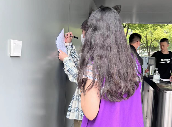 雍紫琳,“00后”,是一名南京大学生,协助工作人员向外籍观众发放南京大屠杀国际传播现状问卷,她还会用英文向外籍观众介绍史实。