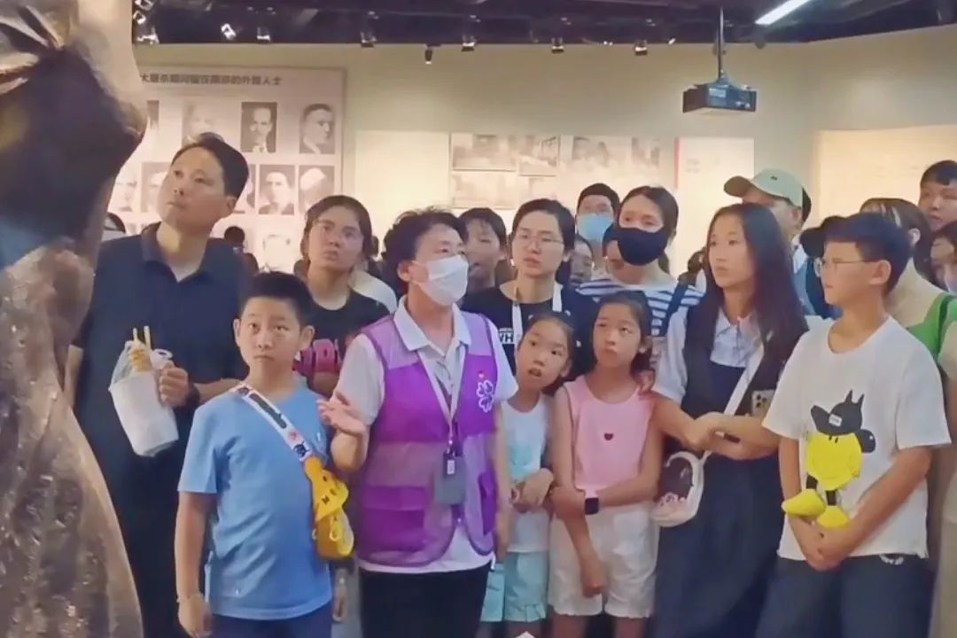 今年以来,纪念馆累计接待观众达157万人次。七八月份是纪念馆参观人流量最多的时候,许多工作年限稍长的讲解志愿者会主动多承担一些讲解任务,李国荣正是其中一员。今年67岁的李国荣有着13年的志愿服务经验,2019年,她在紫金草志愿者傅云生的动员下,报名加入纪念馆志愿服务队。“我是南京人,又喜爱朗读,我希望发挥自己的特长,为社会做点有意义的事,为传播历史尽一份责任。”