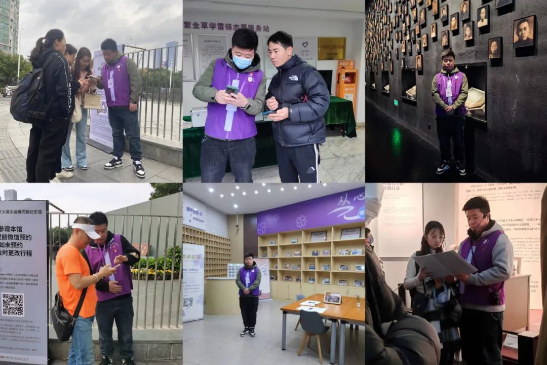 纪念馆紫金草志愿服务队成立于1994年。30年来,注册人数从最初的60人发展到22984人,队员从最初的大学生发展到社会各界——来自多个国家的青年志愿者、幸存者后代、各行各业爱好和平的人士等。他们常年义务提供展陈讲解、文明引导、语言翻译、公益演出等多种服务,为传播南京大屠杀历史真相、传递和平理念默默奉献,累计服务时长超过百万小时。